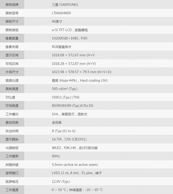 液晶屏尺寸 46寸TFT真彩液晶屏