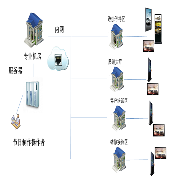 目前4S店基本都是通過(guò)產(chǎn)品宣傳折頁(yè)、易拉寶、櫥窗海報(bào)、燈箱等傳統(tǒng)的媒體進(jìn)行被動(dòng)信息宣傳,并且顯得零亂無(wú)序。創(chuàng)視紀(jì)出的電子海報(bào)機(jī)可以更加清晰、更加醒目、更加規(guī)范和更加有效地展示汽車產(chǎn)品在顧客面前。通過(guò)網(wǎng)絡(luò)可以可以遠(yuǎn)程、即時(shí)發(fā)布廣告信息,使所有的顯示終端形成一個(gè)強(qiáng)大的信息發(fā)布平臺(tái)。