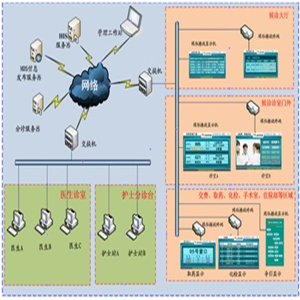 充分利用就醫(yī)者及其親屬等待休息時(shí)間,通過(guò)智能顯示設(shè)備進(jìn)行醫(yī)院形象、產(chǎn)品廣告等宣傳,便于患者更加了解醫(yī)院、信任醫(yī)院;播放當(dāng)天的氣象信息、感冒指數(shù)、時(shí)鐘等公益信息,豐富播放內(nèi)容,提高收視關(guān)注度,體現(xiàn)醫(yī)院的人性化關(guān)懷。