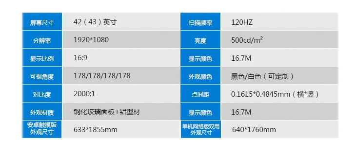 1、外殼選用優(yōu)質(zhì)金屬材料制作,表面并經(jīng)噴粉工藝處理;外殼顏色以,黑,銀色為主,面帶亞克力面板防刮傷。可根據(jù)客戶要求定做;采用后背墻掛方式。