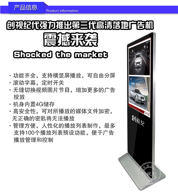 55英寸落地式廣告機 立式智能單機版插卡液晶顯示屏