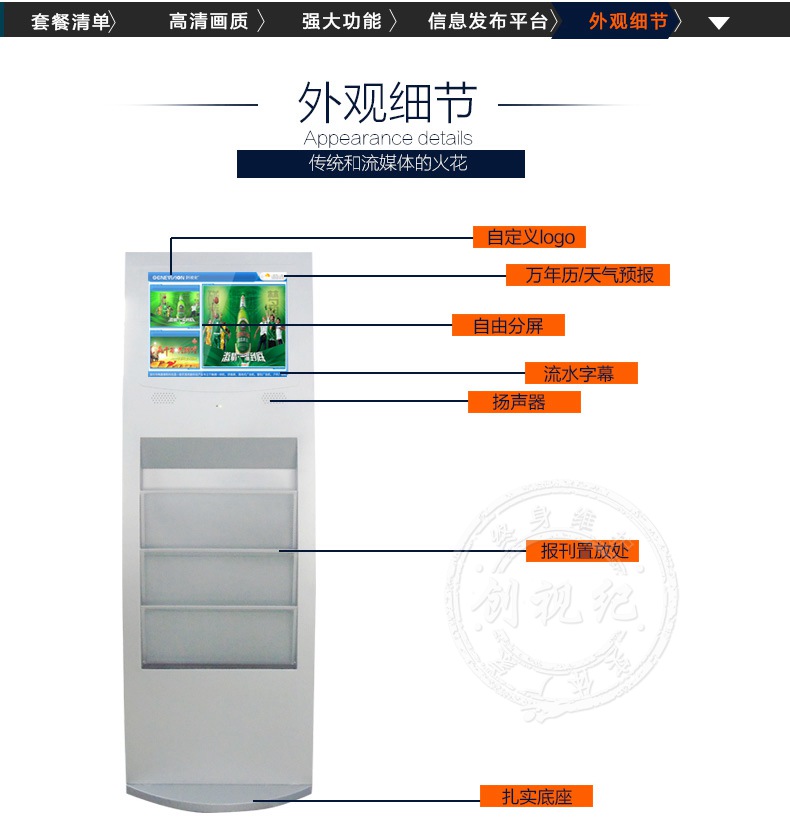 產品名稱:19寸網絡報刊廣告機 品牌: 創視紀