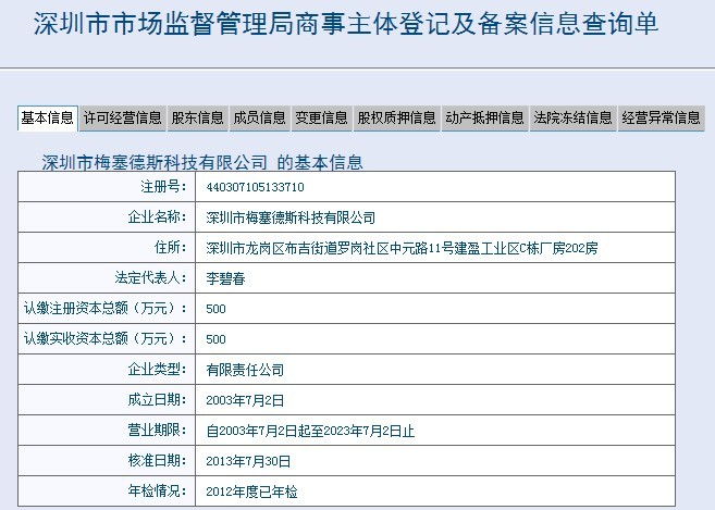 以上資訊已深圳市市場監督局網站提供:http://app01.szaic.gov.cn/aiceqmis.webui/GeneralSearch.aspx