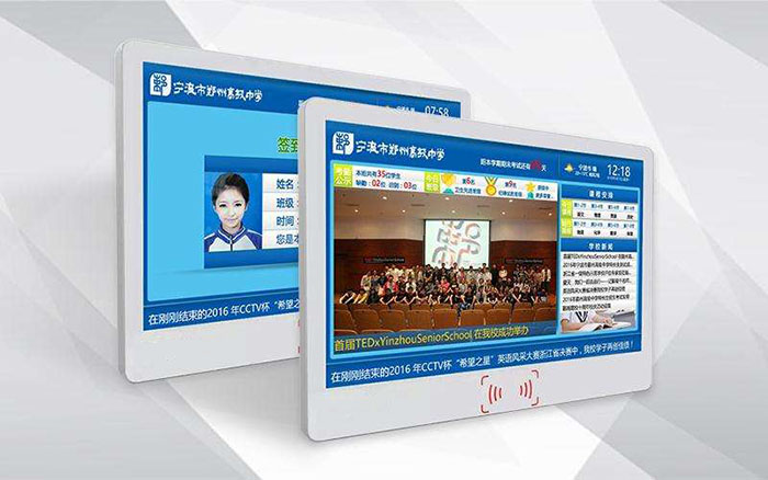 電子班牌是當今校園文化建設、數字化建設的系統之一,是學校日常工作、班級文化展示和課堂教學管理等實現智慧校園的應用載體。常規的電子班牌均是安裝于教室門口,顯示班級信息,當前課程信息,班級活動信息以及學校的通知信息,實現了學校日常工作與環境美化的完美融合,為全方位培育和打造校園文化環境提供了一個窗口。